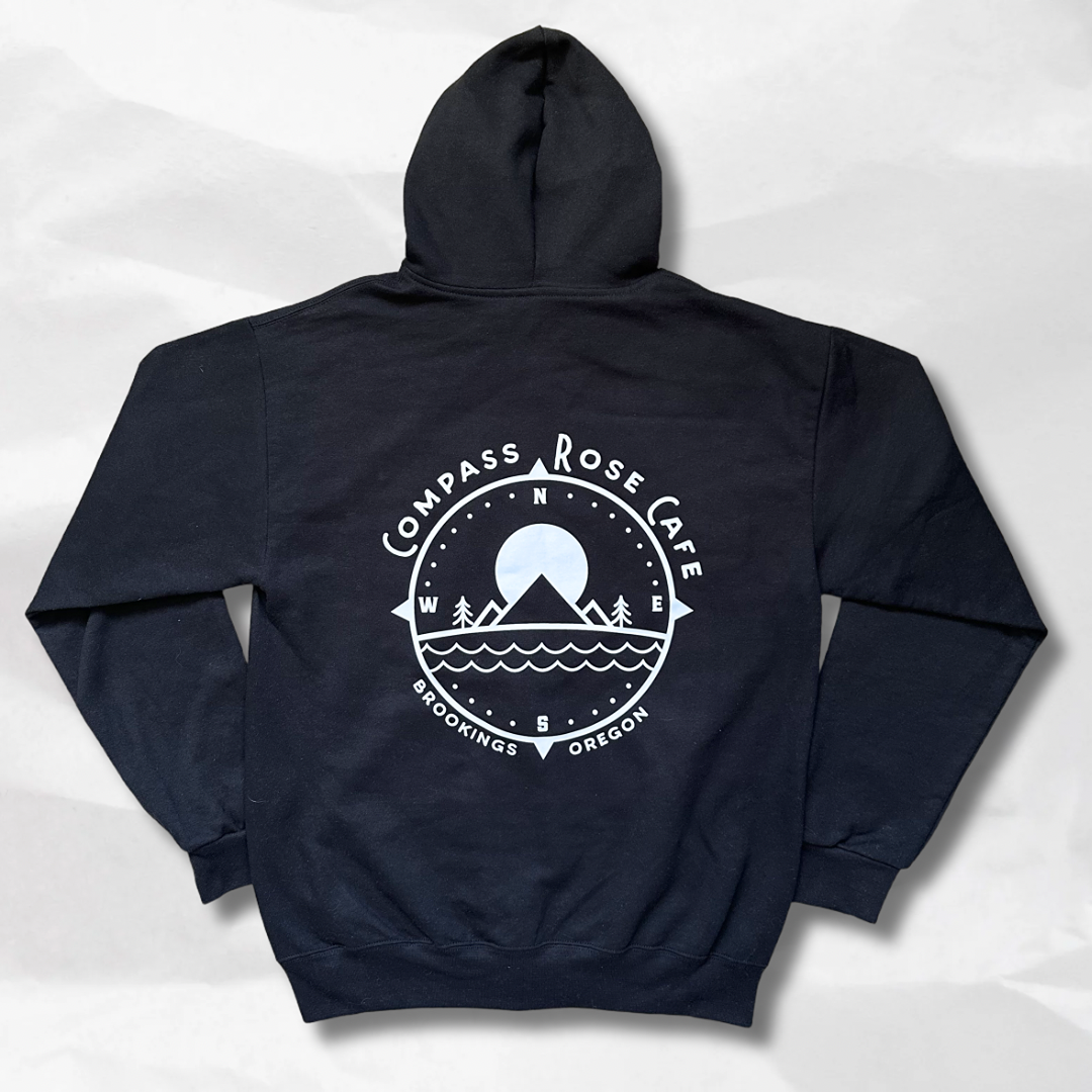 Cozy cotton-blend hoodie with our logo hand-printed on the front and back featuring a front zip!